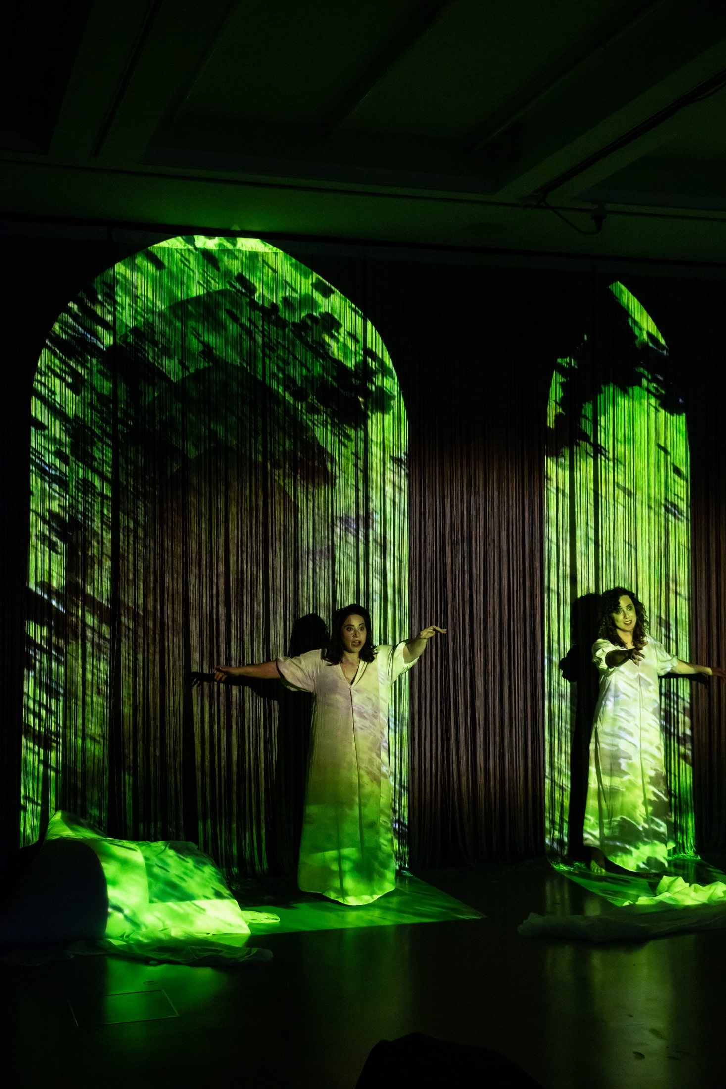 In dem multimedialen Musikprojekt „melaTONin“ durchlebt das Publikum einen Schlafzyklus mit all seinen Phasen. Einschlaf-, Leichtschlaf-, Tiefschlaf- und REM-Phase werden übersetzt in eine außergewöhnliche Konzertinstallation aus Raum, Klang, Text und Videokunst. Dabei verbinden sich Volks- und Kunstlieder – passend zur jeweiligen Schlafphase und speziell für die außergewöhnliche Besetzung des trio.s, bestehend aus zwei tiefen Frauenstimmen und Akkordeon arrangiert – mit zeitgenössischen Akkordeonwerken, Lyrik und Texten aus der Schlafforschung zu einem ganzheitlichen Aufführungskonzept. Raumfüllende bis raumauflösende Videoinstallationen (Videokunst: Manuela Hartel) schaffen dabei die Verschmelzung zwischen Klang und Raum und eröffnen neue Möglichkeiten des Hörens und des Wahrnehmens.